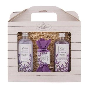 Dárkové balení kosmetiky pro ženu La Provence – dárkový sprchový gel 100 ml, vlasový šampon 100 ml a ručně vyráběné mýdlo 30 g s vůní levandule v dárkové kosmetické sadě.