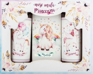 Kosmetická sada pro malou princeznu obsahuje sprchový gel 100 ml, vlasový šampon 100 ml a toaletní mýdlo 100 g.