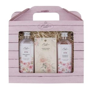 Dárkové balení růžové kosmetiky s extrakty z šípků a květů růže.