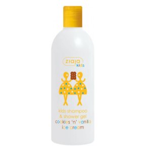 Sprchový gel na tělo a vlasy vytváří bohatou pěnu s vůní sušenek a vanilkové zmrzliny.