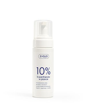 Pěna s 10% D-panthenolem a jitrocelem, doporučená pro univerzální ochranu a péči o pokožku podrážděnou vnějšími faktory.