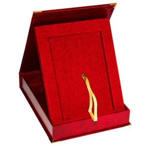 Etue pro dřevěnou podložku 228 x 305 mm Vertikální otevírání - víko etue je upevněno na jedné z jejích kratších stran Materiál: imitace kůže Vyjímatelná sametová výplň pro použití jako stojan Rozměr …