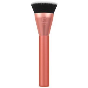 Měkký štětec s jemně zkoseným tvarem, ideální pro nanášení a blendování pudrových produktů.