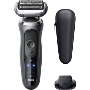 Holící strojek BRAUN Series 7 71-S7200cc Silver Pánský holicí strojek s výkyvnou hlavou 360° Flex – 20° + 10° AutoSense technologie 3 holicí elementy (okolo středového zastřihovače hřebínek MicroComb) …