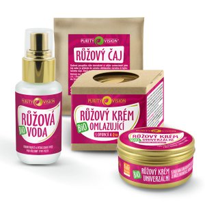 Sada obsahuje: Bio růžový krém univerzální 70 ml Růžová voda ze vzácné damašské růže 50 ml BIO Růžový krém omlazující 40 ml Růžový čaj 10 g