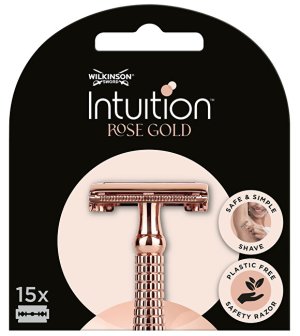 Náhradní žiletky pasují do holicího strojku Intuition Double Edge Rose Gold, jehož rukojeť je zcela bez plastu a je vyrobena z obzvláště kvalitního kovu, takže díky vlastní hmotnosti klouže po pokožce …