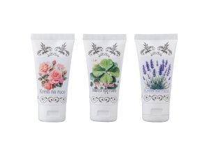 Zvláčňující krém na ruce (50 ml) v jemných vůních růže, levandule a čtyřlístku.