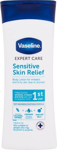 Hydratační tělové mléko s obsahem koloidního ovsa, Vaseline® Jelly a složek podporujících tvorbu ceramidů.