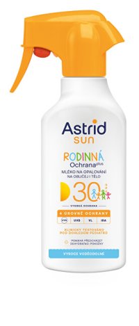 Rodinné opalovací mléko ve spreji, které se díky rozprašovači snadno nanáší.