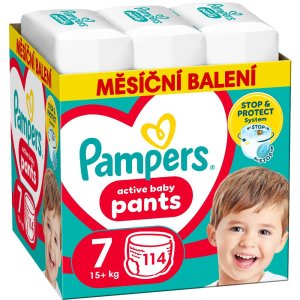 Plenkové Kalhotky Pampers Active Baby Pants 7, 114 ks Velikost 7 114 kusů 15kg+ Poskytují trojnásobnou ochranu se systémem Stop & Protect 2× širší manžetky, které pomáhají předcházet protečení po …