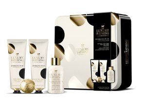 Sada obsahuje: Tělové mýdlo 50 ml Tělový krém 50 ml Krém na ruce 50 ml Šumivá koule do koupele 25 g Plechová dóza 1 ks Tělové mýdloMýdlo šetrně čistí pokožku, zanechává ji hebkou na dotek a vytváří bohatou …