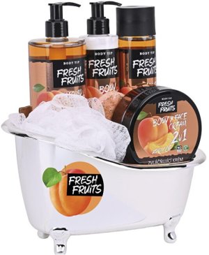 Dárkové balení kosmetiky s meruňkovým olejem pro péči o pokožku těla i obličeje v dekorativním obalu.