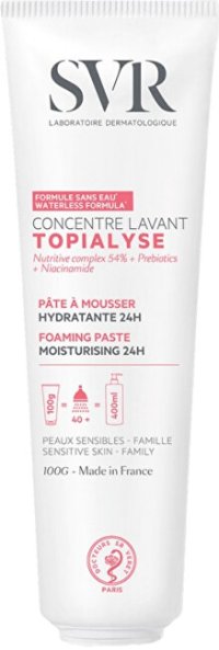 Koncentrovaná pěnivá pasta pro šetrné čištění citlivé a suché pokožky.