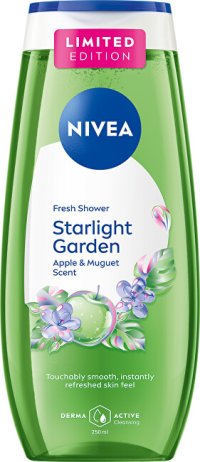 Sprchový gel Starlight Garden s obsahem vitamínů ošetřuje vaši pokožku hedvábně jemnou pěnou a zanechá jí hebkou a hydratovanou.