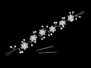 Romantická ozdoba s perlovými květy a korálky bude jemným a elegantním doplňkem vašich vlasů.