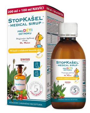 STOPKAŠEL DR. WEISS® PRO DĚTI obsahuje unikátní účinné složení 5 bylinných extraktů, beta-glukanů a selenu.