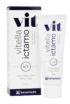 Zklidňující pasta Vitella Ictamo je určena pro péči o bolestivá, podrážděná či zhoršená ložiska kůže včetně míst, kde není vhodné použít mast či krém.