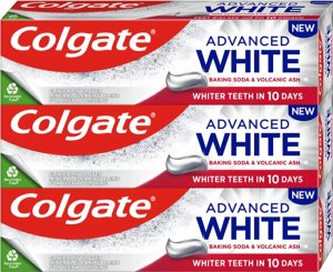 Rozjasněte svůj úsměv se zubní pastou Colgate Advanced White Purple, která obsahuje gel s fialovými pigmenty a klinicky ověřený bělicí systém.