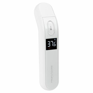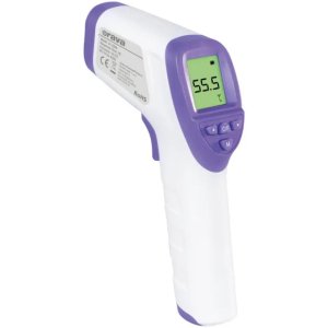 Bezkontaktní hygienický teploměr pro rychlé změření teploty miminek, malých dětí a dospělých.