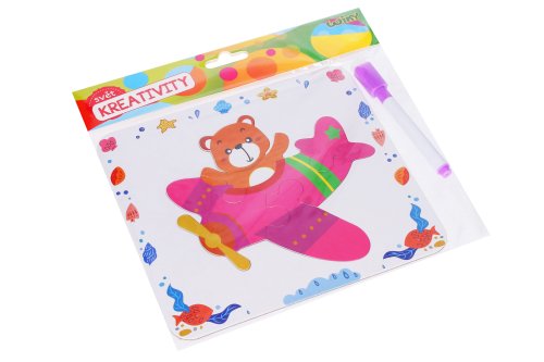 Jedna strana obsahuje puzzle a druhá strana tabulku, na které lze psát přiděleným fixem.