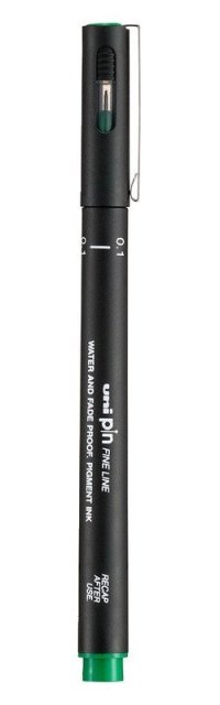Jedinečný, precizní, technický i kreativní. To je liner PIN. Kalibrované a odolné hroty spolu se Super Ink inkoustem zajišťují maximální preciznost při technickém kreslení. Zároveň, díky štětcovým hrotům je velmi oblíbený i u výtvarníků. Voděodolný a světlostálý inkoust je možný kombinovat s akvarely. Základní monochromatické barvy, rozšířené o sépiovou barvu a odstíny hnědé, zelené a růžové, nabízejí skvělou volbu pro precizní linkování, stínování a kreslení.<br><br>Kalibrovaný precizní liner s barevnou náplní pro ještě více kreativních možností. Barevné označení víčka a koncovky usnadňuje orientaci v pultovém displeji i při samotném kreslení.<br><br>• šířka stopy: 0,1 mm<br>• kalibrovaný hrot<br>• vhodný na psaní i kreslení<br>• světlostálý a voděodolný inkoust<br>• víčko s kovovým klipem<br>• barva náplně: zelená<br>• obsah balení: 1 ks<br>