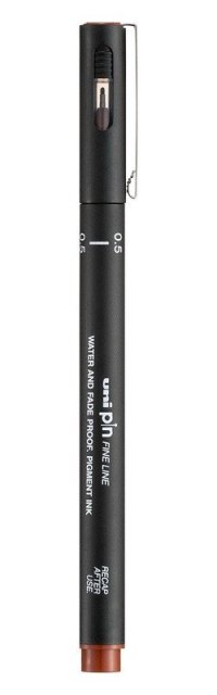 Jedinečný, precizní, technický i kreativní. To je liner PIN. Kalibrované a odolné hroty spolu se Super Ink inkoustem zajišťují maximální preciznost při technickém kreslení. Zároveň, díky štětcovým hrotům je velmi oblíbený i u výtvarníků. Voděodolný a světlostálý inkoust je možný kombinovat s akvarely. Základní monochromatické barvy, rozšířené o sépiovou barvu a odstíny hnědé, zelené a růžové, nabízejí skvělou volbu pro precizní linkování, stínování a kreslení.<br><br>Kalibrovaný precizní liner s barevnou náplní pro ještě více kreativních možností. Barevné označení víčka a koncovky usnadňuje orientaci v pultovém displeji i při samotném kreslení.<br><br>• šířka stopy: 0,5 mm<br>• kalibrovaný hrot<br>• vhodný na psaní i kreslení<br>• světlostálý a voděodolný inkoust<br>• víčko s kovovým klipem<br>• barva náplně: hnědá<br>• obsah balení: 1 ks<br>