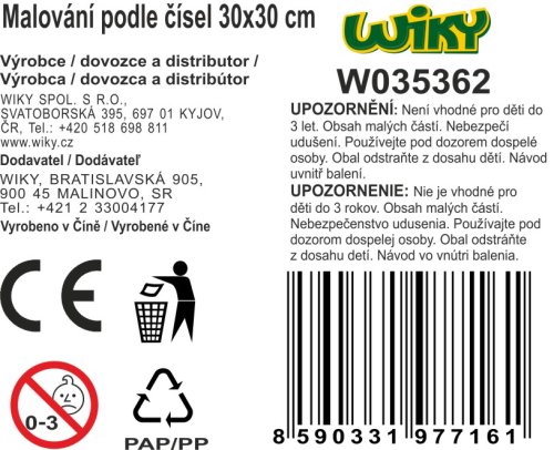 Kreativní set malování podle čísel. Velikost plátna 30x30 cm MIX. Uvnitř balení: 1x plátno, 1x sada barev, 3x štětec, návod. 10 různých obrázků: pes, maják, lev, strom, drak, strom života, auto, hrad, pírka, měsíc