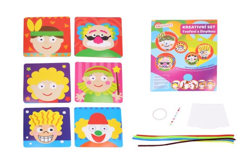 Kreativní set - obličej Balení obsahuje: Žinylky, kamínky, 1x obličej, oboustrannou lepicí pásku a stojánek. 6 variant.