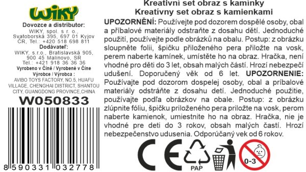 Kreativní set obraz s kamínky liška. Velikost 17,5x17,5x1,5cm. Obsahuje misku na kamínky, pero na nabírání a umísťování kamínků, kamínky různých barev, vosk., rámeček. Postup: z obrázku sloupněte folii, špičku přiloženého pera přiložte na vosk, perem naberte kamínek, umístěte ho na obraz.
