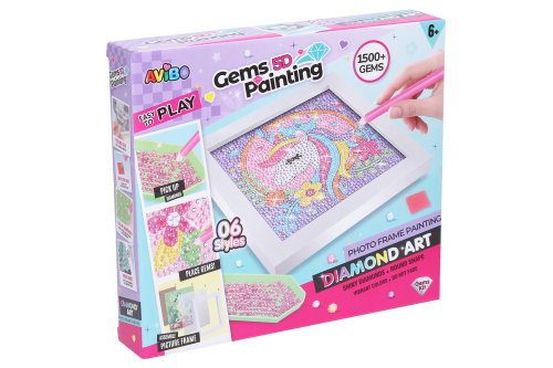 Kreativní set obraz s kamínky papoušek. Velikost 17,5x17,5x1,5 cm. Obsha balení - miska na kamínky, pero na nabírání a umísťování kamínků, kamínky různých barev, vosk, rámeček. Postup: z obrázku sloupněte folii, špičku přiloženého pera přiložte na vosk, perem naberte kamínek, umístěte ho na obraz.