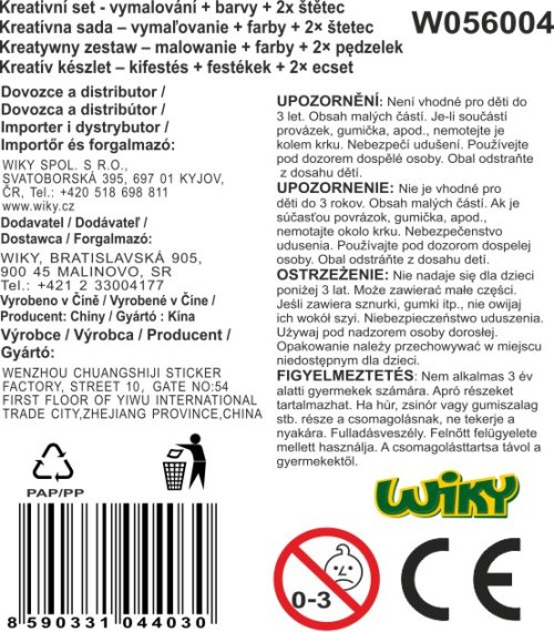 * Uchovávejte materiály pro výtvarné práce na suchém a chladném místě. * Chraňte před přístupem dětí, abyste se vyhnuli nebezpečným situacím. 9. Likvidace: