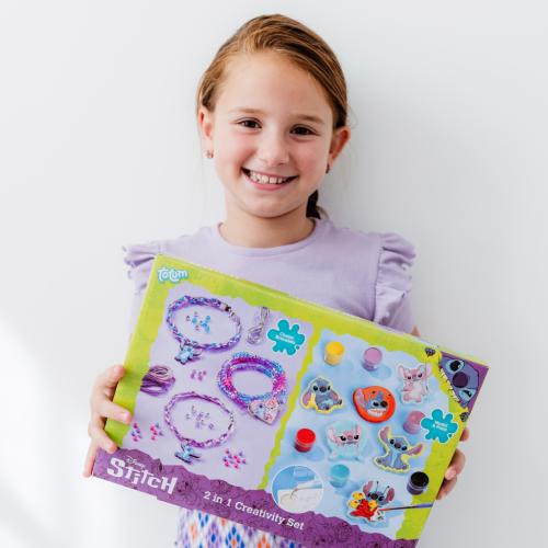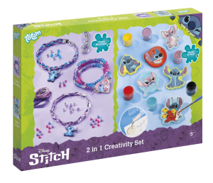 Stitch 2v1: Sprejovací pera a náramky s přívěsky – Unikátní kreativní sada, která kombinuje dvě zábavné aktivity! Použijte sprejovací pera pro originální kresby a poté si vytvořte vlastní náramky s roztomilými přívěsky. Sada obsahuje všechny nástroje a materiály potřebné pro obě kreativní činnosti – sprejovací pera: Speciální fixy a nástavec pro přeměnu fixů na sprejovací barvy, šablony: Papírové nebo plastové šablony pro tvorbu obrázků, náramky: Šňůrky, lanka, nebo elastické pásky pro navlékání.Korálky a přívěsky: Různobarevné korálky a tematické přívěsky (charms) pro zdobení náramků.