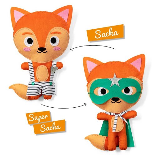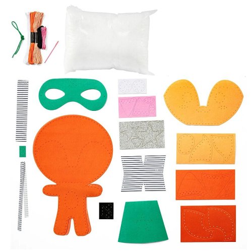 SADA OBSAHUJE:, * proděrované kusy plsti, * lepící kusy plsti, * vycpávkovou vatu, * plastovou jehlu, * 3 nebo 4 špulky nití, * návod, VHODNÉ PRO DĚTI OD 6-10 LET., ROZMĚRY BALENÍ: 18 X 30 CM