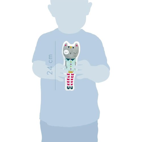 SADA OBSAHUJE:, * bavlněnou kočku Huguette s potiskem o velikosti 24 cm, * 6 kelímků s barvami, * 1 štětec, * tubu se třpytkami, VHODNÉ PRO DĚTI OD 6-10 LET., ROZMĚRY BALENÍ: 14 X 28 CM