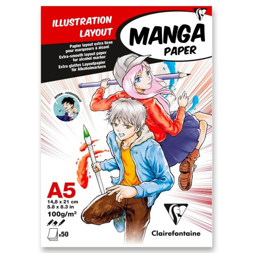 Sada obsahuje:, * blok Clairefontaine Manga Illustrations A5, * 5 předkreslených listů , * 6 popisovačů Faber-Castell Goldfaber Sketch Dual Marker, * 1 černé umělecké pero Faber-Castell Pitt Artist Pen, * instruktážní video