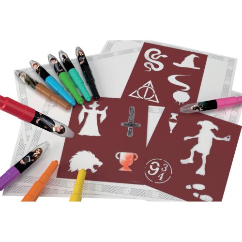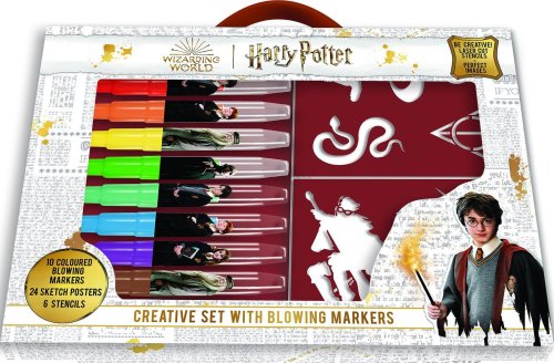 Objev svět magie s touto kreativní sadou foukacích fixů s motivy Harryho Pottera. Stačí jen nasadit fix do držáku, fouknout – a vznikne originální sprejový efekt. S pomocí tematických šablon si děti mohou vytvořit vlastní umělecká díla s motivy Bradavic, relikvií smrti, brýlí s jizvou a dalších ikonických symbolů ze světa kouzel.