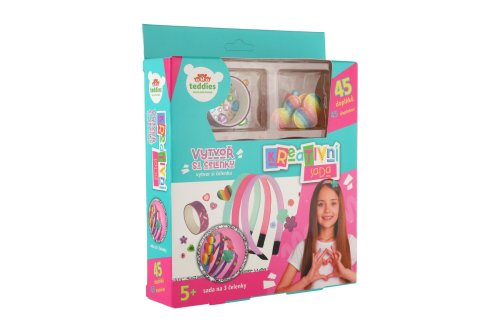 Rozviňte fantazii a vytvořte si originální módní doplněk. Tato kreativní sada umožní dětem vyrobit si vlastní čelenky podle jejich vkusu. Díky široké nabídce barevných doplňků a ozdob si mohou zvolit styl, který se jim líbí – od hravého a barevného až po elegantní a jemný. Podporuje tvořivost a jemnou motoriku. Možnost kombinovat různé barvy a ozdoby. Snadná a zábavná výroba vhodná pro děti. Obsah balení: