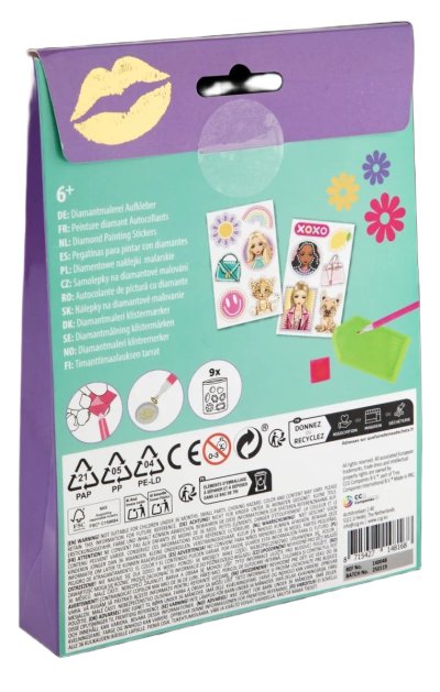 Kreativní set diamantové malování samolepky obsahuje 12 kusů samolepek k vytvoření, kamínky/diamanty, aplikační pero, lepící čtvereček a tácek, 18x13x2,5 cm