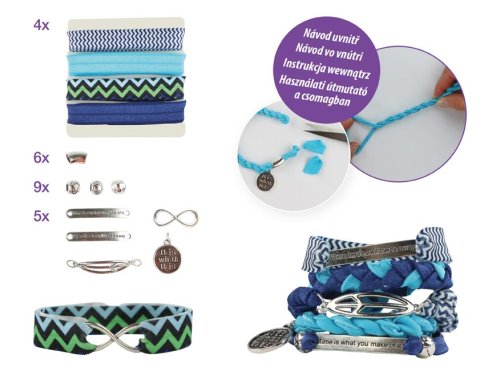 Kreativní set - náramky 5 ksBALENÍ OBSAHUJE:- 4 x elastická šňůrka- 6 x trubicoví korálek- 9 x korálek- 5 x přívěsek- 1 x návod k použitíVAROVÁNÍ: Nevhodné pro děti do 3 let. Obsahuje malé části, hrozí nebezpečí udušení!Uvedená cena je za 1 balení.
