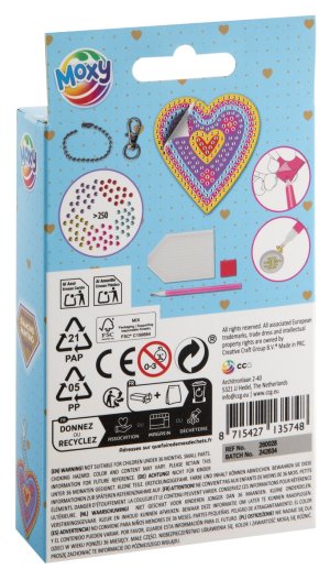 Kreativní set vyrob si svůj diamantový přívěsek. Součástí balení je přívěsek, více než 250 barevných diamantů/kamínků, lepící sada s perem k lepení a umisťování drahokamů do přívěsku, řetízek a karabinka