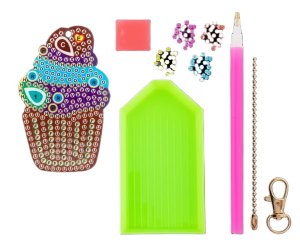 Kreativní set vyrob si svůj diamantový přívěsek ve tvaru dortíku. Součástí balení je přívěsek,různě barevné diamanty/kamínky, lepící sada s perem k lepení a umisťování drahokamů do přívěsku, tácek, řetízek a karabinka. Tento parádní přívěsek lze nosit na batohu, klíčích nebo kdekoliv jinde tě napadne.