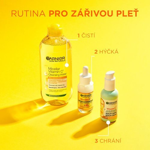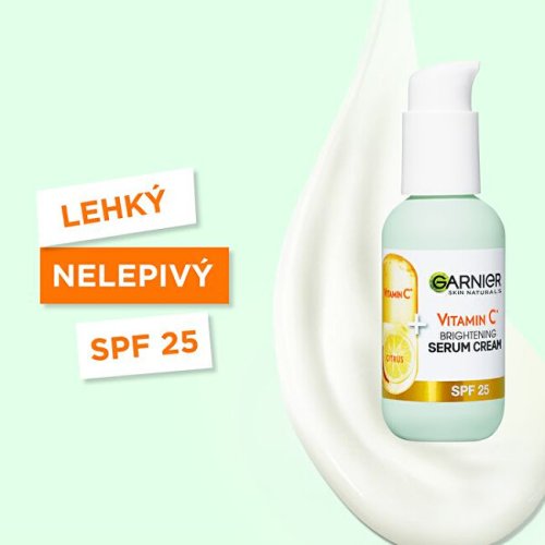 Krémové sérum 2 v 1 obohacené o 20 % vitaminu C pro rozjasnění pleti a sjednocení tónu pokožky. Funguje jako sérum a hydratuje jako krém. Vitamin C má na pleť rozjasňujíci účinky, pomáhá zvýšit zářivost pleti a redukuje tmavé skvrny.