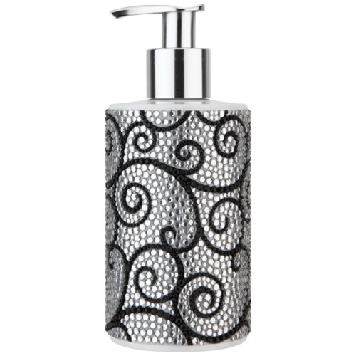 Krémové tekuté mýdlo Glamour in White jemně myje pokožku rukou a zanechává ji příjemně hebkou po každém mytí. Vaše ruce budou po použití mýdla chráněné před vysušováním a dokonale provoněné. Díky designu obalu s ozdobnými krystaly je mýdlo vhodné i jako dárek nebo jako luxusní doplněk do koupelny.