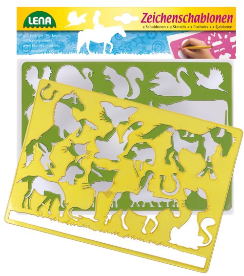 Kreslící šablony s motivem koní a koček. Balení obsahuje 2x šablonu o velikosti 27x23cm.