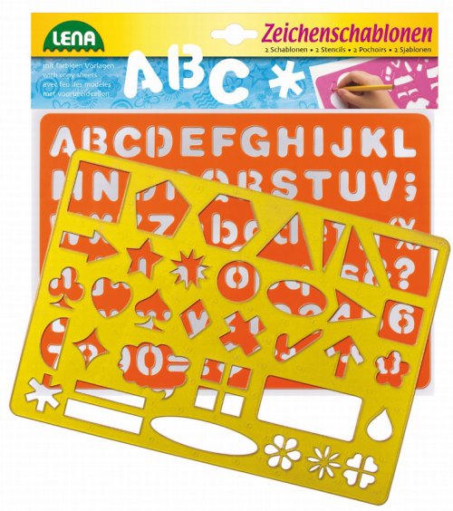 Kreslící šablony s motivem písmenek a symbolů. Balení obsahuje 2x šablonu o velikosti 27x23cm.