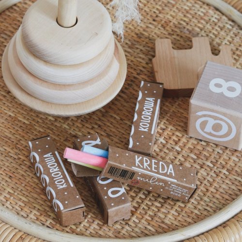 Dřevěná tabulka se 4 křídami rozvíjí grafomotorické dovednosti, podporuje kreativitu a fantazii.