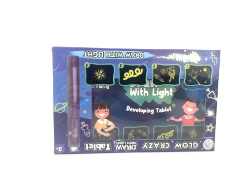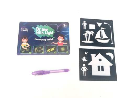 Kreslící tabulka svítící ve tmě je inovativní kreativní hračka určená pro děti od tří let, která podporuje rozvoj fantazie a jemné motoriky. Tento set umožňuje dětem kreslit pomocí speciální světélkující tužky, která vytváří na tabulce zářící obrazy viditelné právě ve tmě. Díky této unikátní funkci mohou malí umělci experimentovat s kreslením světlem bez potřeby inkoustu nebo papíru, což eliminuje jakýkoliv nepořádek a usnadňuje kreativní zábavu.