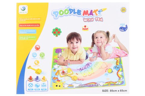 Kreslící vodní tabulka. Naplňte pero čistou vodou a kreslete na kouzelnou podložku na kreslení. Po 3-10 minutách magicky zmizí (v závislosti na teplotě a proudění vzduchu) a děti mohou na podložku malovat znovu a znovu. Balení obsahuje podložku, 3 razítka, 2 pera, 1 štětec a další doplňky. Rozměr balení cca 38 x 31,5 x 4 cm. Věk 3+