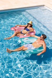 Pohodlné nafukovací křeslo obsahuje 2 vzduchové komory a 2 pevná držadla. Vyrobeno z kvalitního vinylu (0,25mm). Maximální nosnost 100 kg. Rozměry 152 x 99 cm.