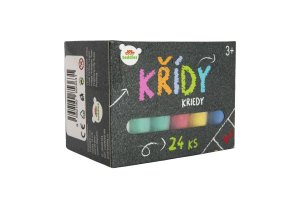 Balení barevných kříd v praktické krabičce. Krabička obsahuje 24ks chodníkových kříd. Vhodné k malování na tabuli, dřevo, ale také na asfalt. Kreslení rozvíjí u dětí kreativitu, fantazii, šikovnost, zručnost, jemnou motoriku a další. Rozměry balení 15 x 11 x 10 cm Vhodné pro děti od 3 let